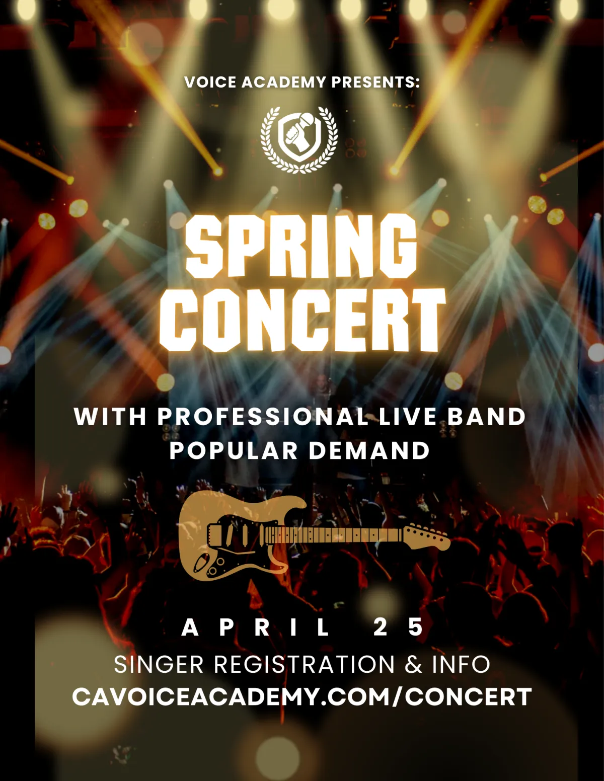 Get ready to shine on a big stage in our most anticipated Concert of the year! A chance to build confidence and take the next step in your musical journey in front of friends & family. Singers must choose a song from the band song list (List is on sign up page!) Limited spots, reserve your spot today!